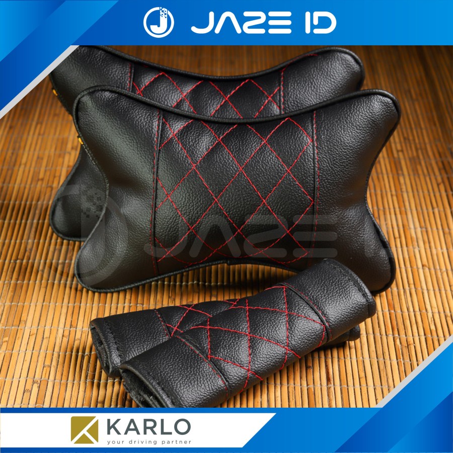 Detail Karlo Paket Bantal Leher Seatbelt Premium Mobil Basic Dot Black Hitam