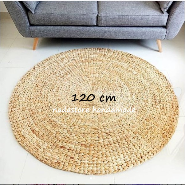 karpet nih sis fully natural sis bahan anyaman enceng gondok anyaman rapi . mudah di gulung anti jamur , anti rayap dengan menggunakan base propan anti fungi melamin dengan propan gloss ukuran tersedia diameter 60 cm diameter 80 cm diameter 100 cm , diameter 120 cm cantik untuk menghias meja juga ,