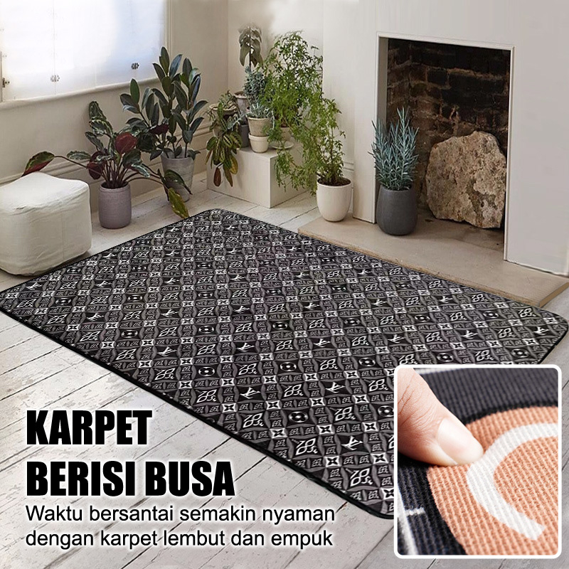 Karpet Lantai Anti Slip Ukuran 90cm x 140cm Alas Ruang Tamu Bahan Polyester Busa Lembut & Empuk Kualitas Premium D1B1