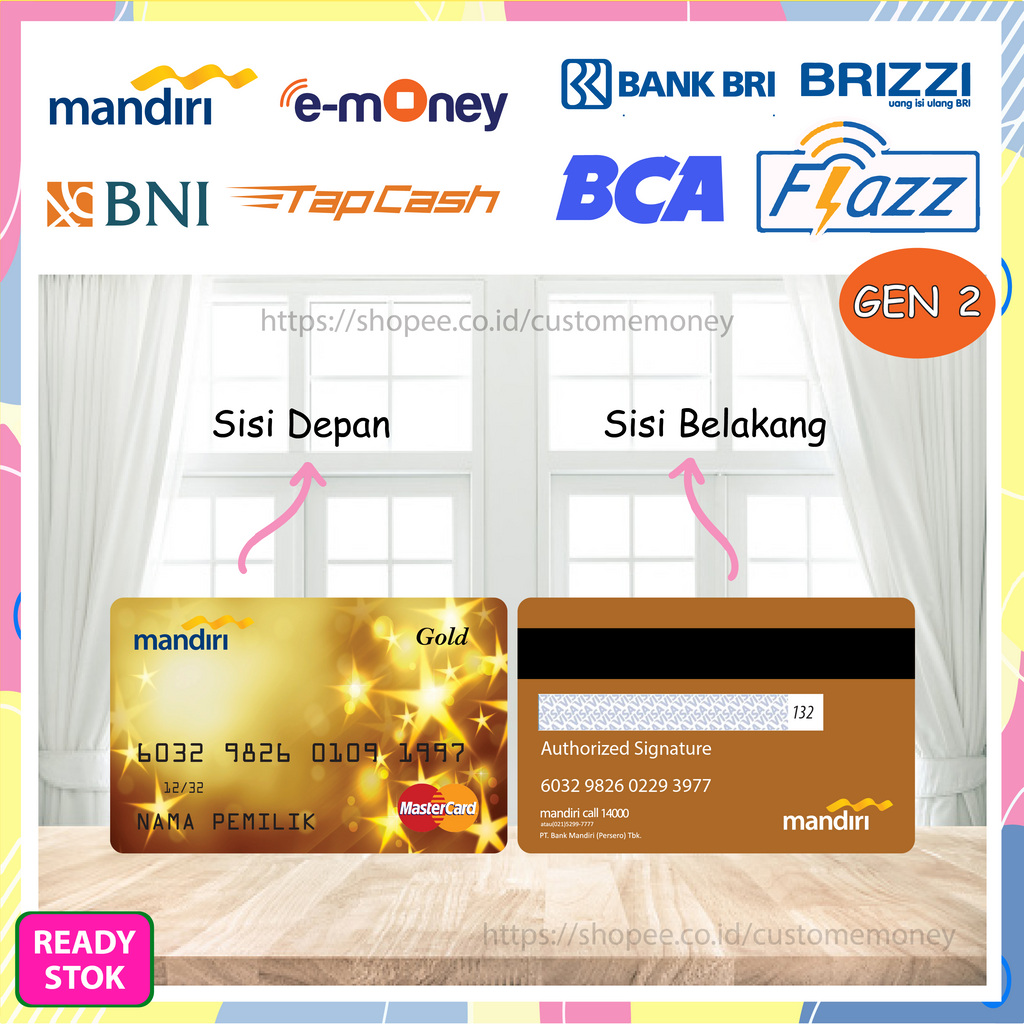 # Kartu Resmi dari Bank Cetak Custom # Print UV ( bukan stiker ) - Mesin dari Jepang Kualitas Terbaik # Terima Design Custom ( Link Order di bawah ya ) : ID CARD / Foto / Gambar dari Google / Klub Bola / Anime / Koleksi dari kita # Jaminan Garansi 100% TUKAR BARU apabila Kartu tidak bisa Topup atau Salah Cetak # Dibuatkan Previewnya dulu sebelum Cetak # Proses CEPAT # Bisa dipakai di Pintu Tol di GTO, MRT, Bayar Parkir, Belanja, Busway, KRL # Kartu Resmi dari Bank Cetak Custom