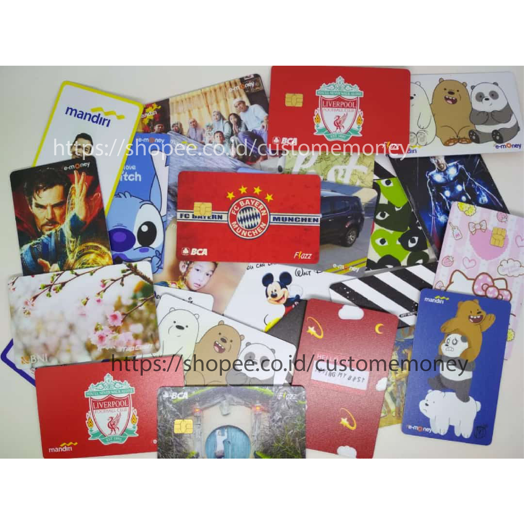 # Kartu Resmi dari Bank Cetak Custom # Print UV ( bukan stiker ) - Mesin dari Jepang Kualitas Terbaik # Terima Design Custom ( Link Order di bawah ya ) : ID CARD / Foto / Gambar dari Google / Klub Bola / Anime / Koleksi dari kita # Jaminan Garansi 100% TUKAR BARU apabila Kartu tidak bisa Topup atau Salah Cetak # Dibuatkan Previewnya dulu sebelum Cetak # Proses CEPAT # Bisa dipakai di Pintu Tol di GTO, MRT, Bayar Parkir, Belanja, Busway, KRL # Kartu Resmi dari Bank Cetak Custom