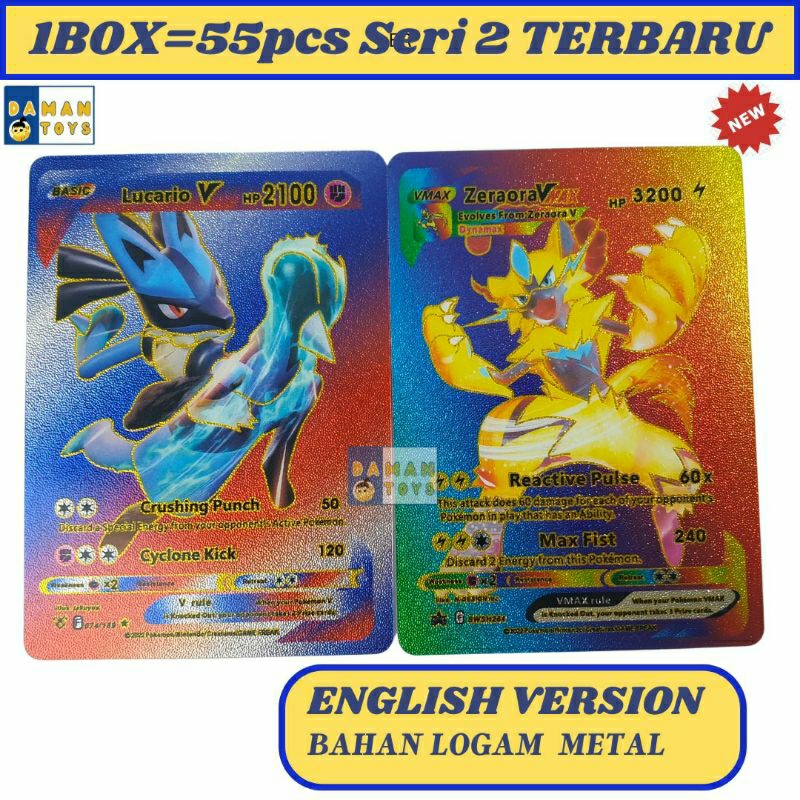 1box 55 pcs dapat Box DETAIL: Kartu Pokemon Bahasa Inggris -1PACK = 55PCS -BAHAN METAL -Ukuran box = 9 x7 x 3 cm -Ukuran Kartu 8.8 x 6.3 cm