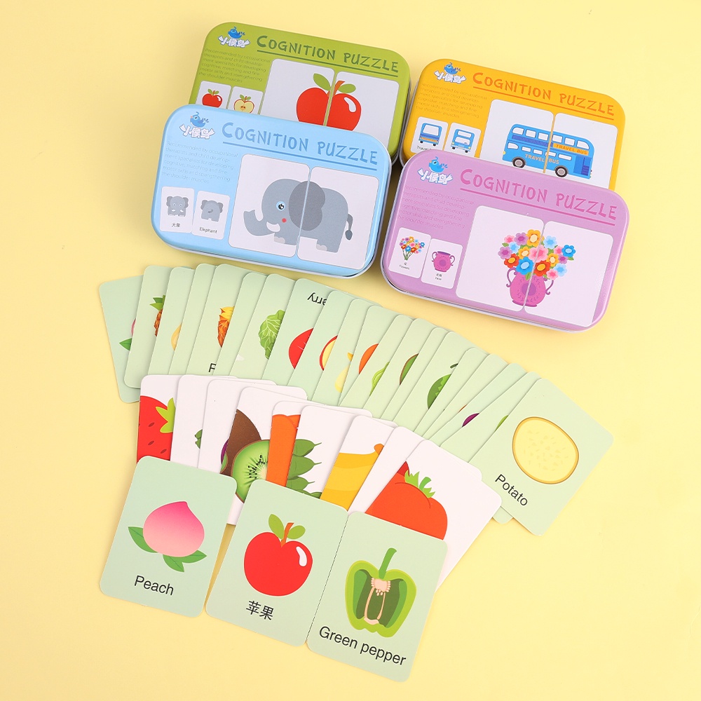 Kartu Puzzle Cognition Bayi/Kartu Edukasi Cina Inggris/Permainan Mencocokkan Lalu Lintas Hewan Buah/Mainan Montessori Anak Paud/Kartu Belajar Dini Untuk 12 3 Tahun