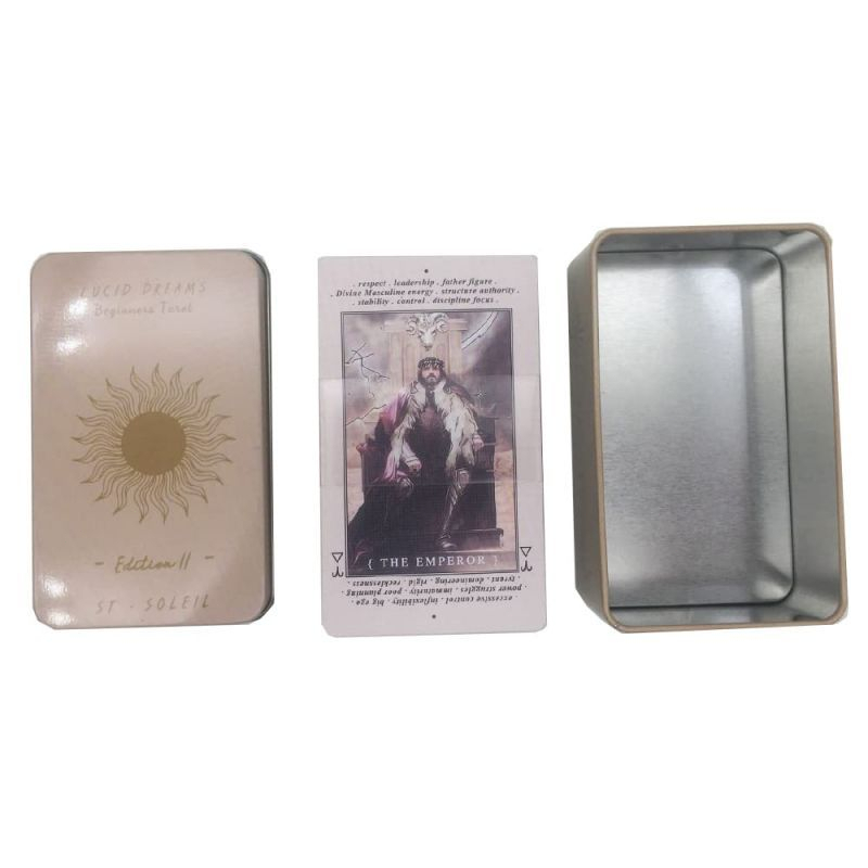 Detail Kartu Tarot Lucid Dreams Dengan Kotak Besi 10.3 x 6cm Kartu Tarot Golden Edge