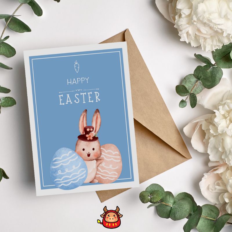 Kartu Ucapan Easter Selamat Paskah Easter Card Rabbit Bunny Cute design