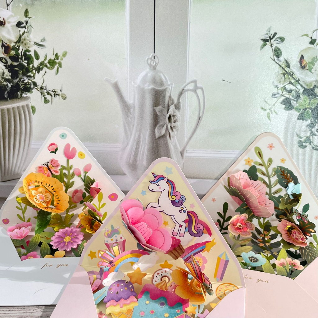 Kartu Ucapan Pop Up 3D Aesthetic Bunga Unicorn Gift Card Kado Termurah / Surat Ucapan POP UP 3 Dimensi Bagus Unik Lucu Kualitas Premium bisa Grosir dan COD