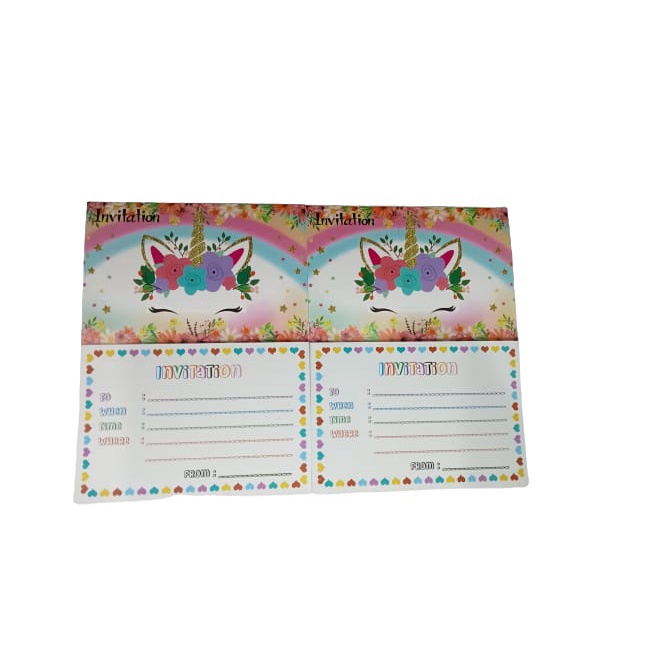 Souvenir & Party Supplies > Perlengkapan Pesta > Kartu Ucapan > Kartu Undangan Ulang Tahun Unicorn 2 sisi Kartu Undangan Ulang Tahun Bagus isi 10 pcs + plasti