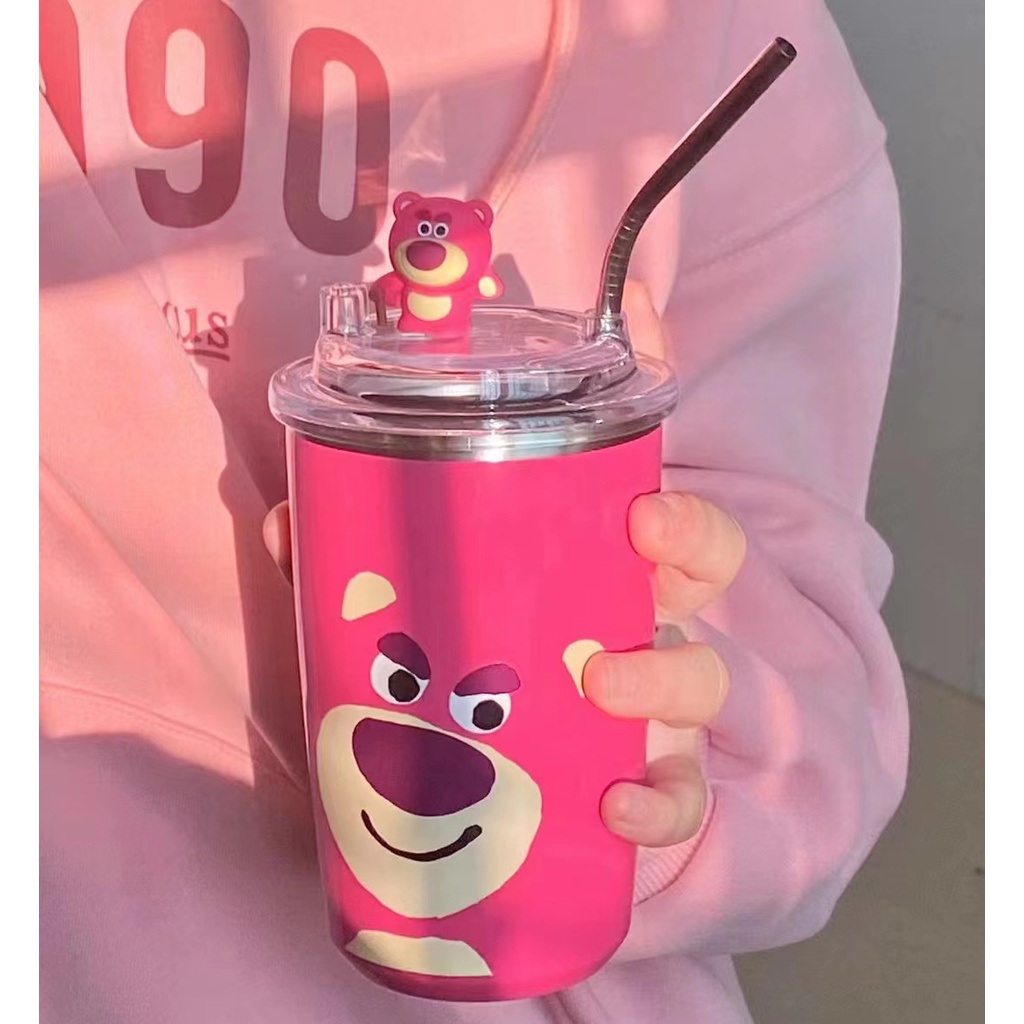 Cangkir termos beruang stroberi, cangkir air kartun, cangkir sippy, cangkir kopi wanita, cangkir kantor, ulang tahun, hadiah Hari Valentine