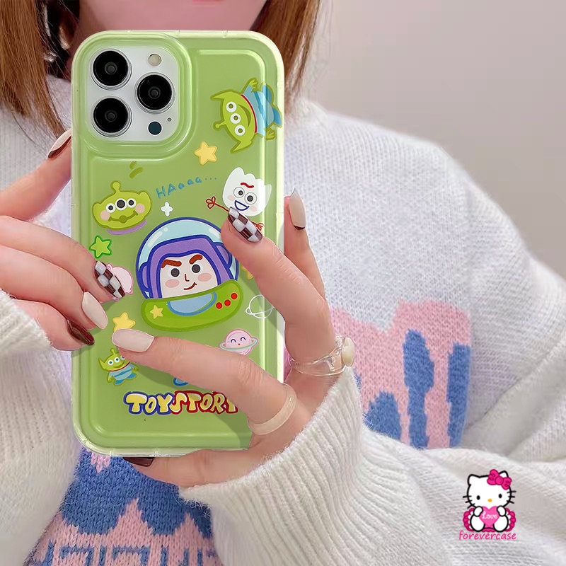 Kartun Buzz Lightyear Alien Phone Case Kompatibel Untuk IPhone 7Plus 11 12 14 13 Pro MAX 6S 86 Plus XR X XS MAX Cerita Mainan Lucu Shockproof Airbag Tpu Soft Cover