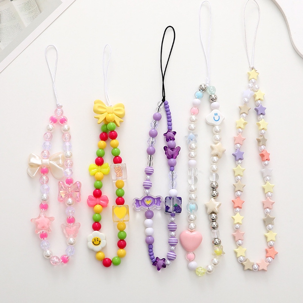 Detail Kartun Cinta Ikatan Simpul Ponsel Rantai Manik-Manik Bintang Airpods Tali Gantung Gelang Pencegah Kehilangan Ponsel Kabel Gantung Aksesoris Ponsel