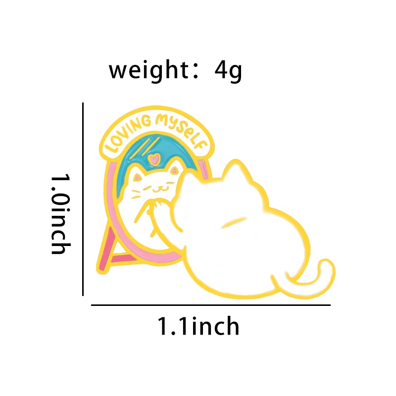 Aksesoris Fashion > Aksesoris Tambahan > Bros & Pin > Kartun Kucing Melihat Di Cermin Kerah Pin Mencintai Diri Sendiri Enamel Bros Ransel Lencana Koleksi Hadiah Untuk Teman Aksesoris Pakaian