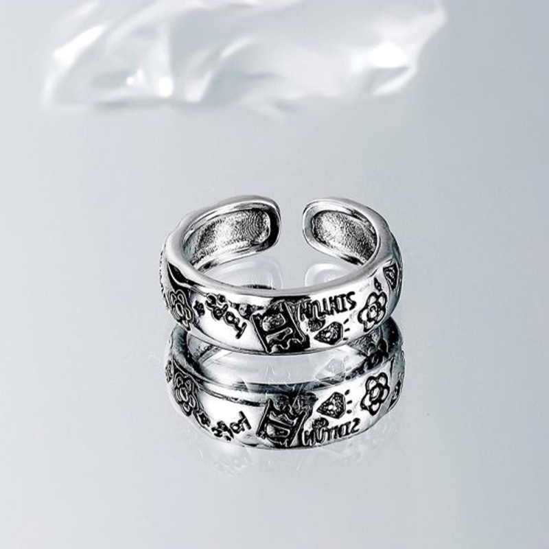 Kartun Pria Retro Bunga Pangeran Grafiti Cincin Terbuka Rasa Desain Minoritas Wanita