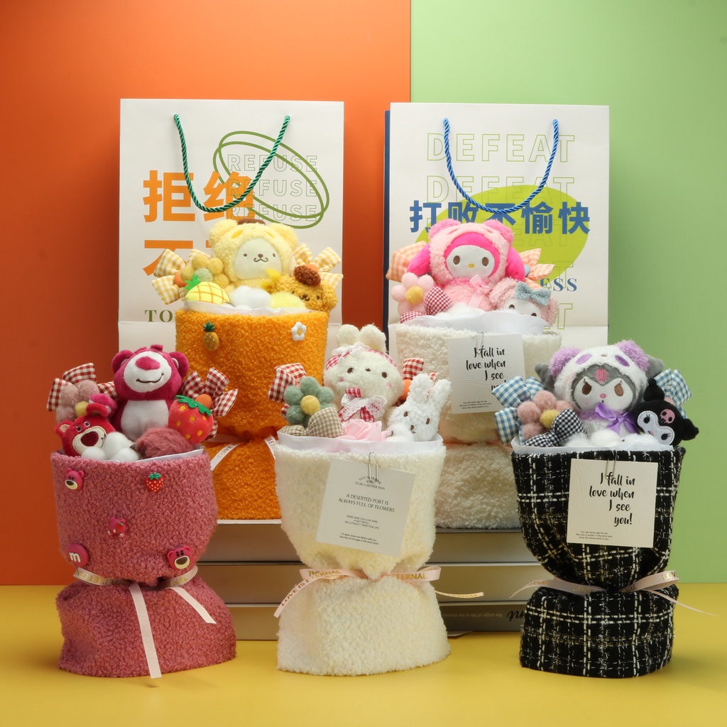 Detail Kartun Manyo Boneka Beruang plushie Boneka Buket cinnamoroll Melody kuromi Mainan Mewah Bunga Hari Valentine Hadiah Ulang Tahun