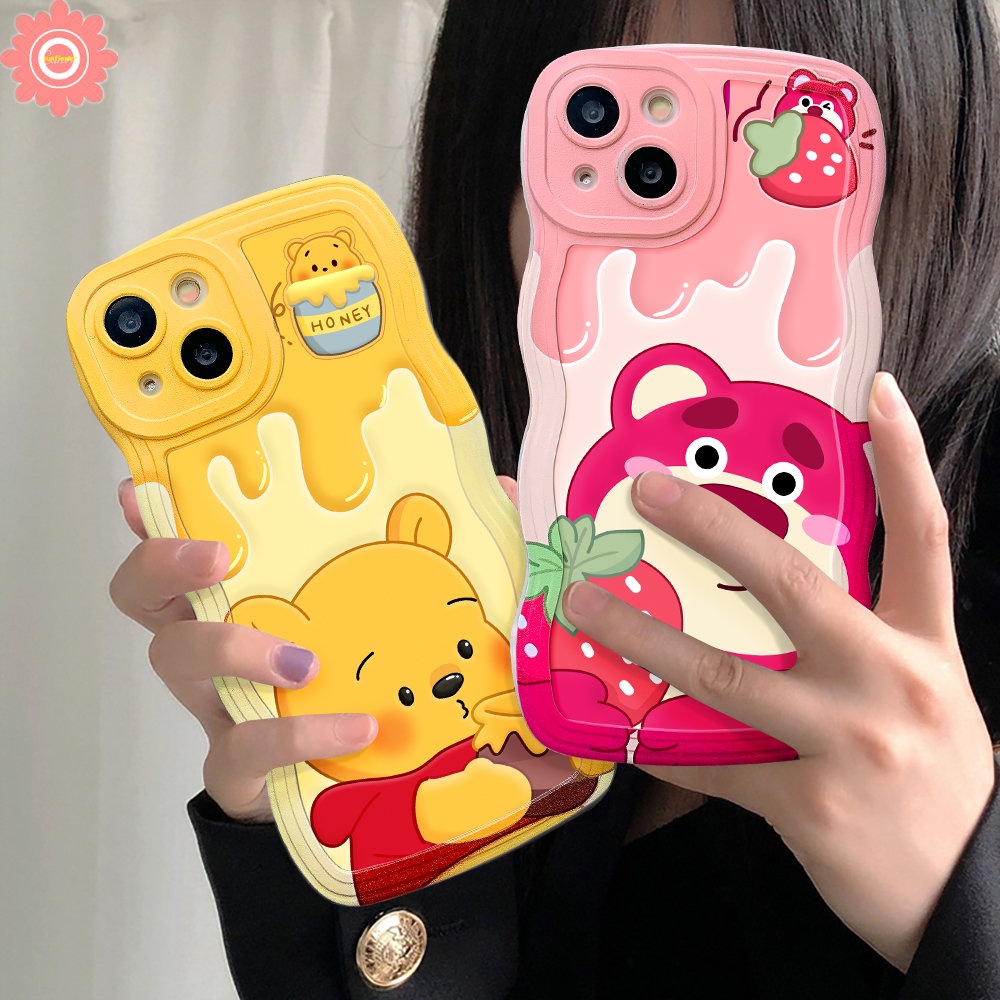 Kartun Manyo Strawberry Bear Case Kompatibel Untuk iPhone 7Plus XR 11 13 12 14 Pro Max X XS Max 6s 14 7 8 6 Plus SE 2020 Lucu Winnie The Pooh Lembut Tpu Penutup Tepi Bergelombang