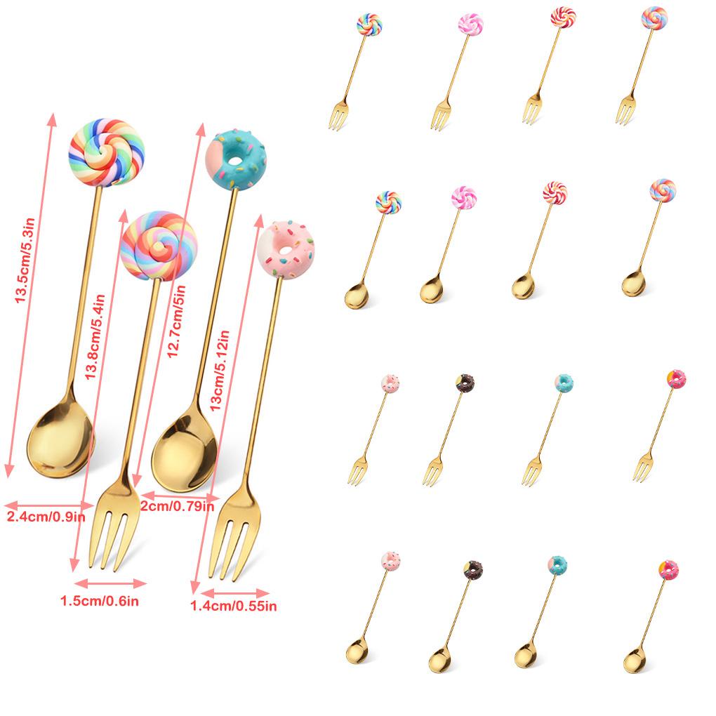 Perlengkapan Rumah > Peralatan Makan > Alat Makan > Kartun Menggemaskan Peralatan Makan Restoran Rumah Tangga Portabel Dapat Digunakan Kembali Stainless Steel Pencampuran Alat Makan Makanan Penutup Sendok Garpu