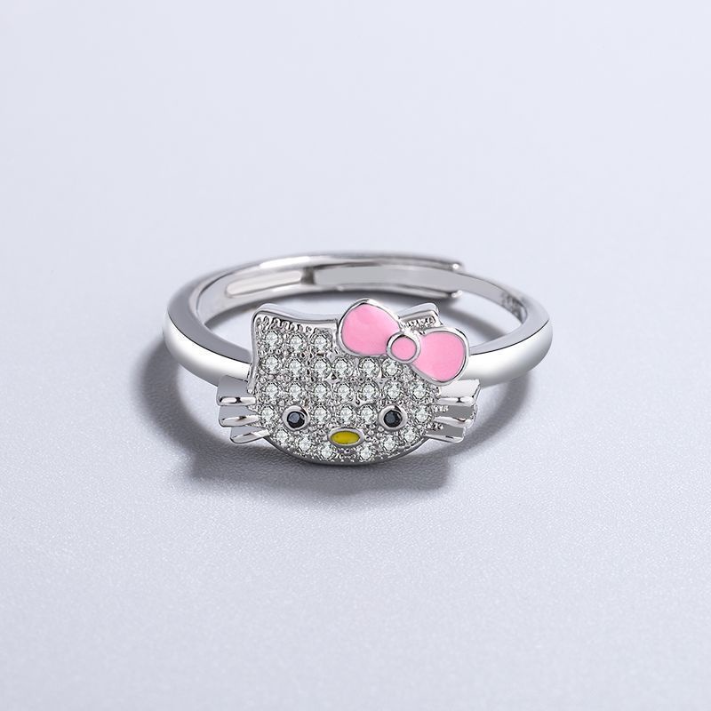 Detail Kartun Mewah Berlian Hello Kitty Cincin Cincin Manis Dan Lucu Pink Kucing Lady Cincin Hadiah Baru