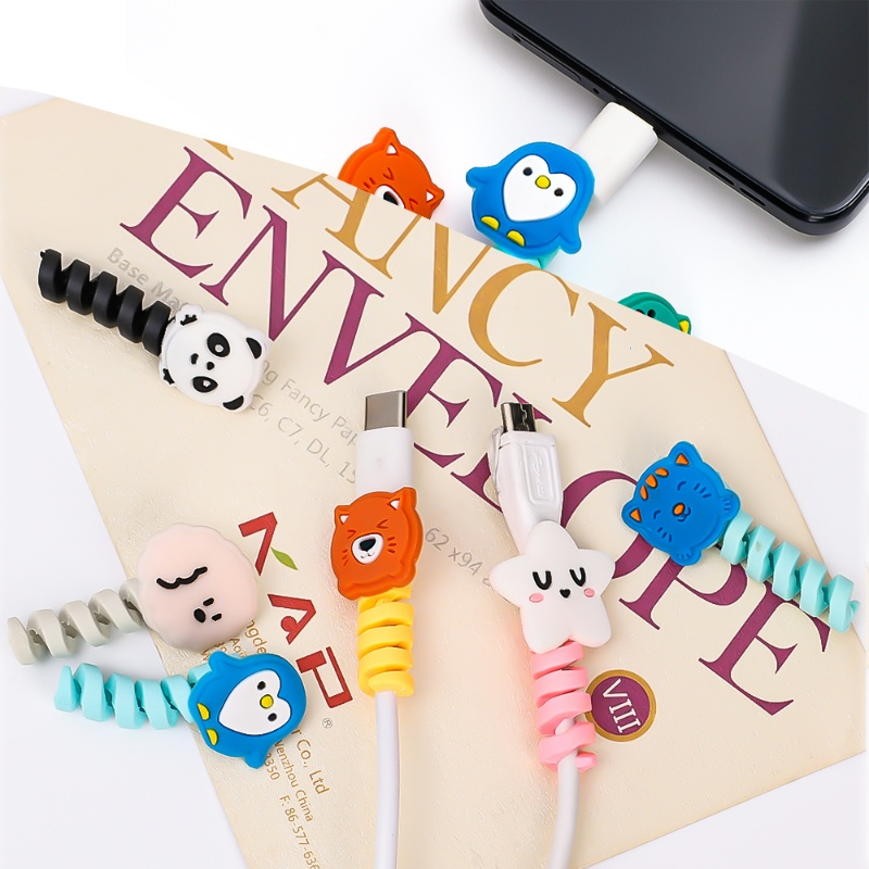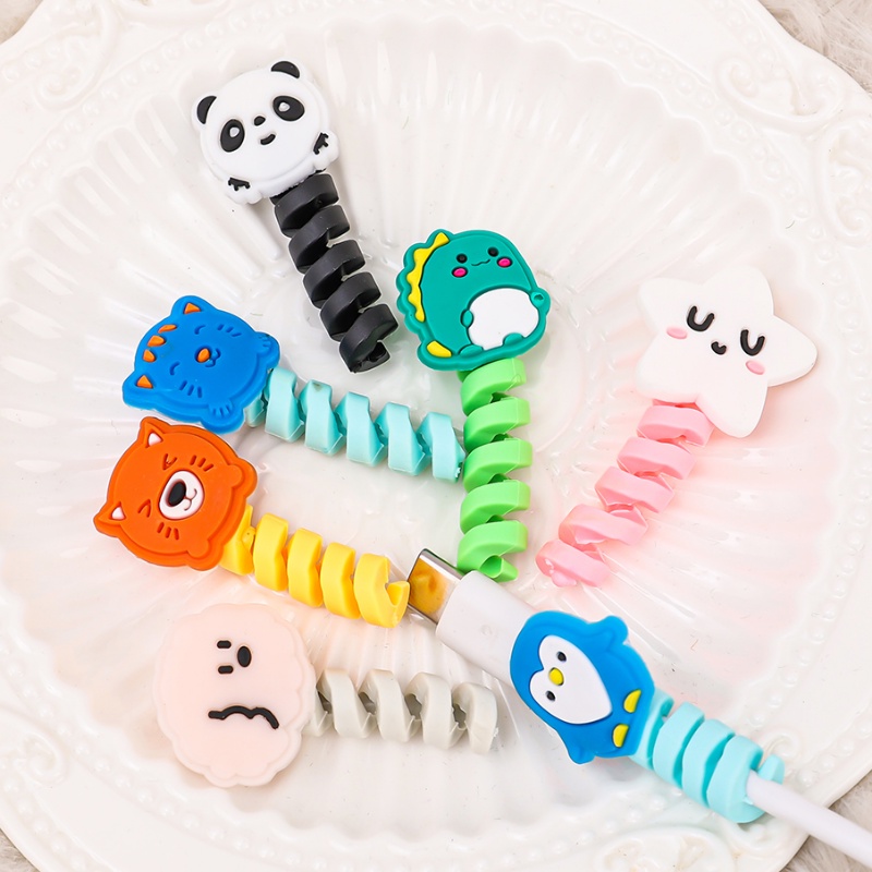 Detail Kartun Spiral Kabel USB Pelindung Anti Putus/Handphone Charging Cable Sleeve Silicone Bobbin Winder Clip Cord Management