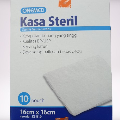 Kasa Steril Ukuran : 16 x 16 cm Bahan : 100 % Katun Asli Merek : Onemed Satuan : Box Kemasan : 10 lembar per box