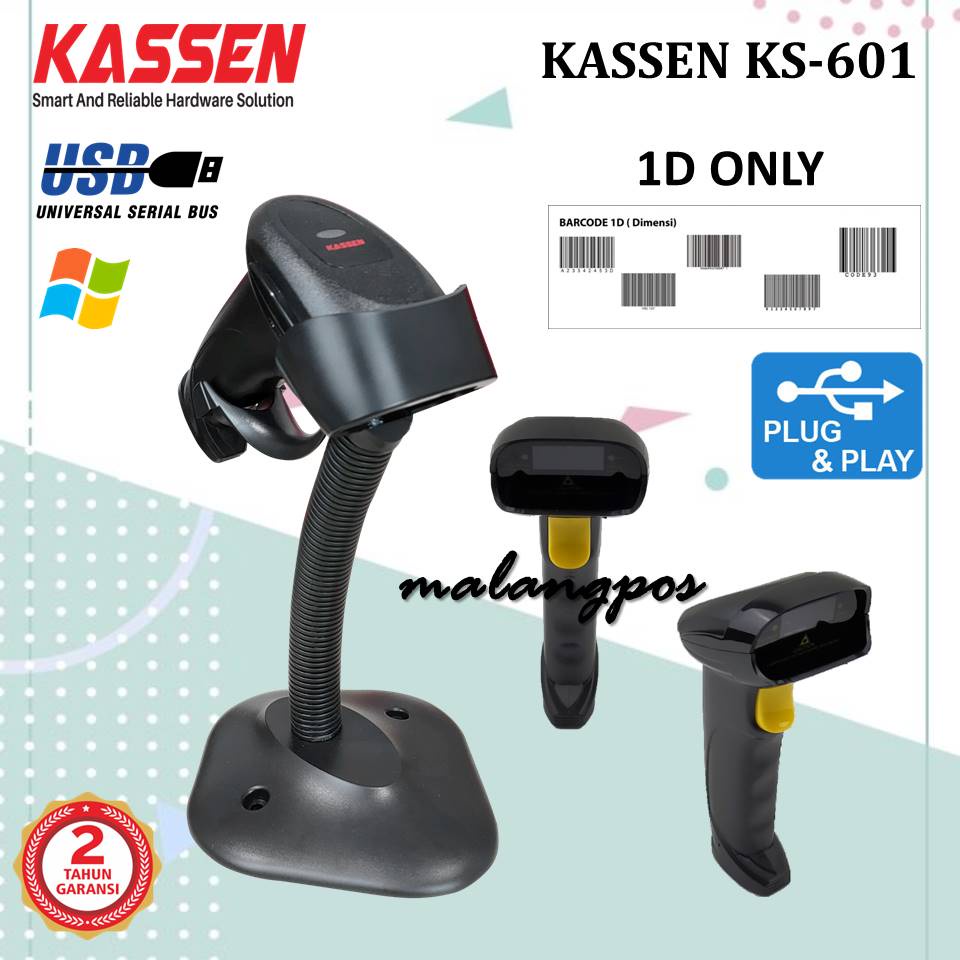 Detail KASSEN KS 601 1D BARCODE SCANNER WIRED LASER KS601 USB WITH STAND AUTO SCAN