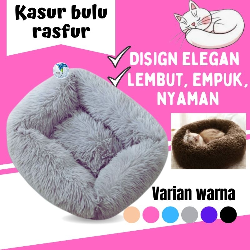 Kasur atau alas kandang untuk kucing dan anjing terbuat dari kain bulu rasfur. Alas bagian bawah dari kain spanbond, di isi full silikon. Tanpa retsleting.
