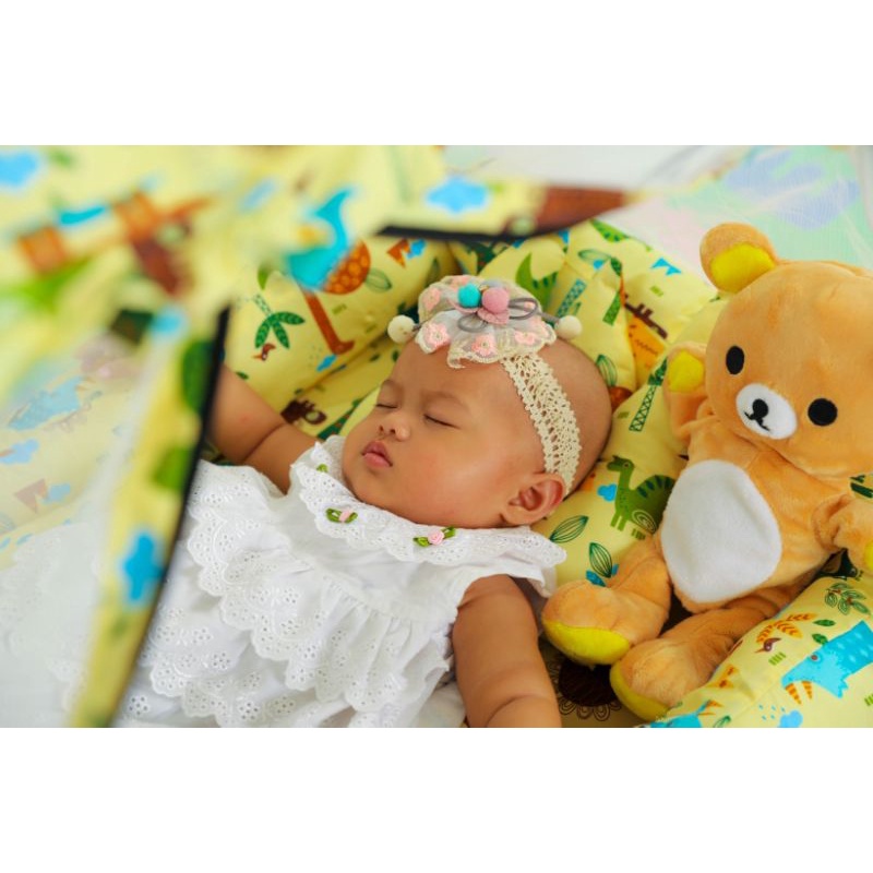 kasur bayi kelambu tenda plus badcover terbuat dari bahan katun berkualitas sehingga nyaman buat bayi karena dalaman kasur berisi full Dakron dan menjadikan kasur nya menjadi empuk . ukuran 80x50x7cm bahan katun premium dalaman full dakro dibagian alasnya terdapat resleting supaya bisa dicuci pinggiran kasurnya bisa dilepas karena pake tali apa saja yg didapat jika membeli kasur ini 1 bantal crown 2 guling kelambu anti nyamuk bedcover ukuran 80x80 kasur bayi empuk