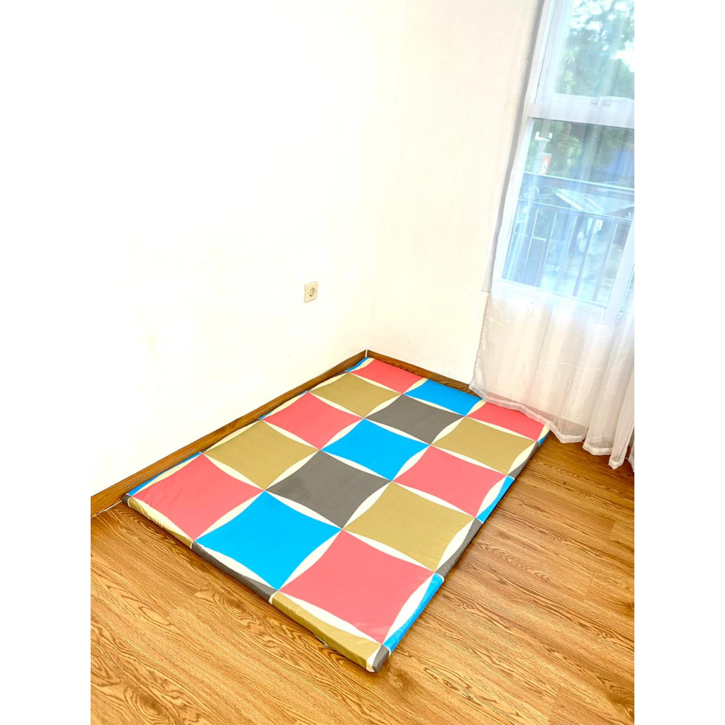 ukuran : 150x100x2 cm bahan : kain katun disprese bahan busa yang kami gunakan yaitu busa memori foam squishi empuk dan elastis sehingga tidak mudah kempes dan nyaman di gunakan.