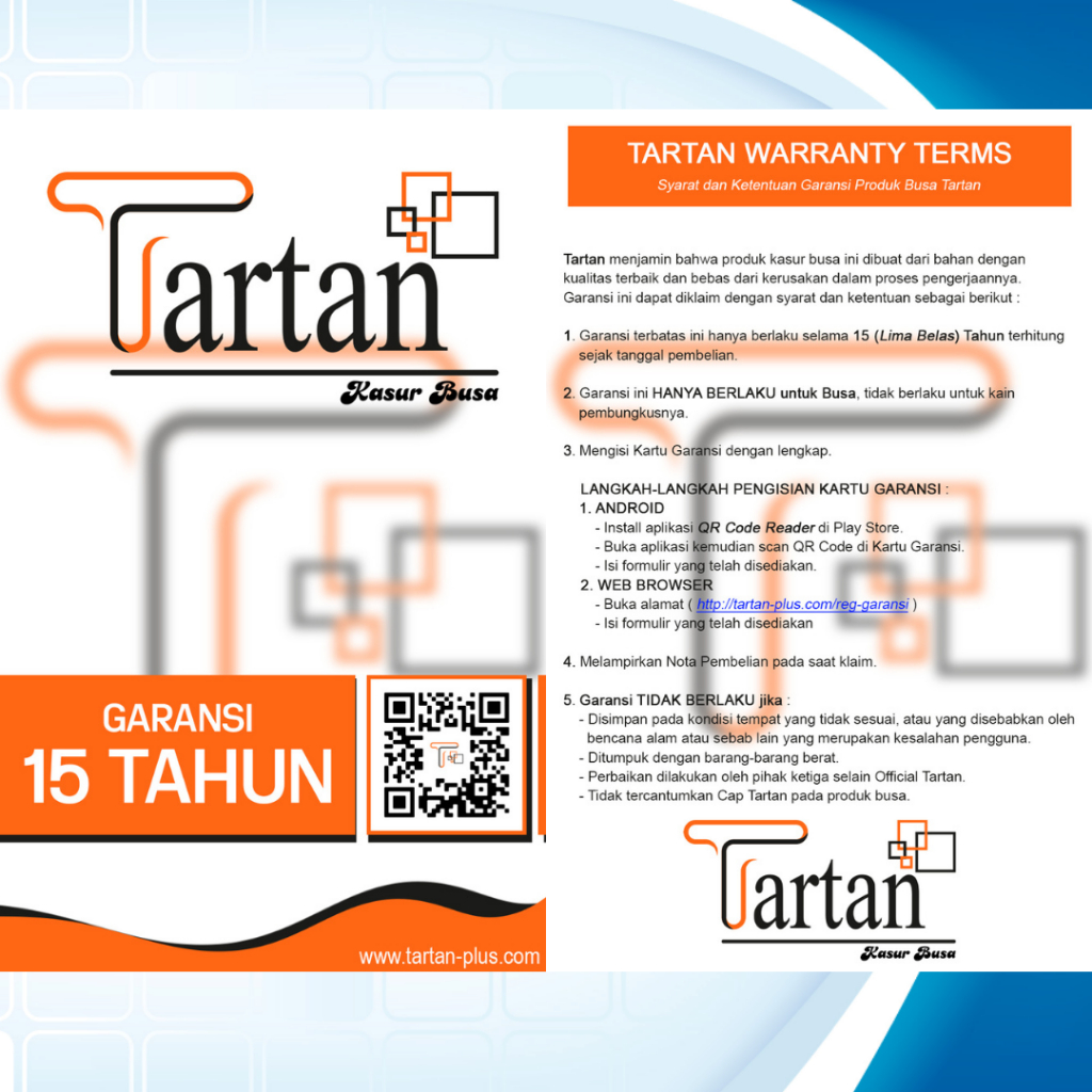 Tartan Plus Adalah Salah satu produk Busa yang memiliki penjualan terbaik. Tentunya karena telah terbukti Kualitasnya . Kasur Busa Tartan Plus memiliki warna Busa Biru Tosca dengan Density / Massa Jenis 20.Density : Istilah yang digunakan oleh pabrik untuk menjelaskan berat busa (Polyurethane Foam) dalam 1 Meter Kubik Maksudnya, jika dalam ukuran busa 1 meter x 1 meter x 1 meter dan beratnya adalah 20 kilogram, berarti busa tersebut disebut density 20.