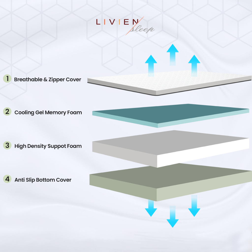 1.Material Baru Cooling Gel Memory Foam yang membantu anda mendapatkan tidur lebih nyaman dan sejuk