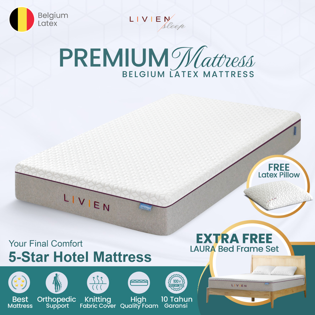 Livien Sleep kasur latex yang dirancang menggunakan teknologi Belgia dengan tingkat keempukan medium firm.