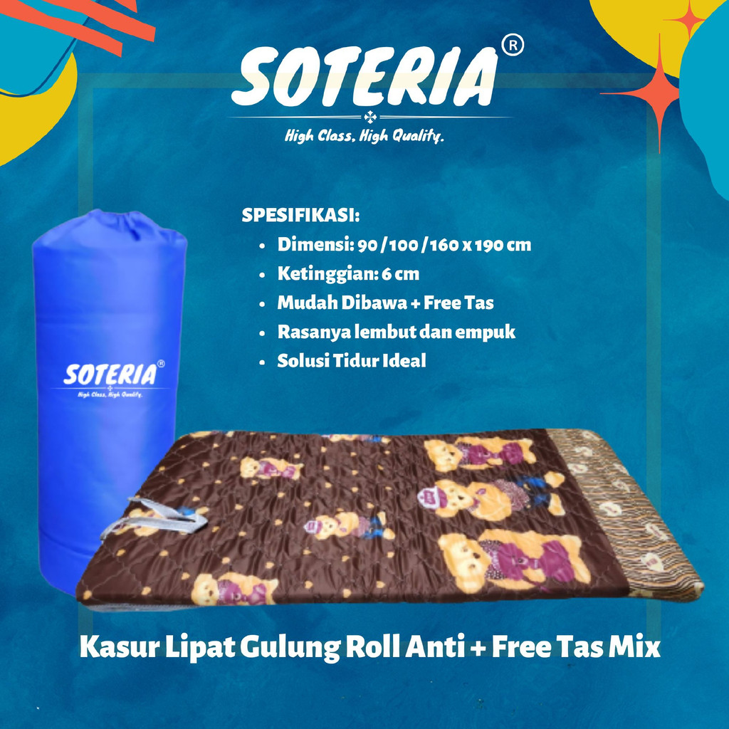 Kasur Lipat Gulung Roll Bed Super Anti Kempes Free Tas Mix SOTERIA