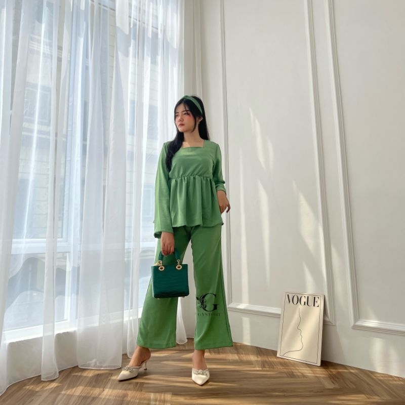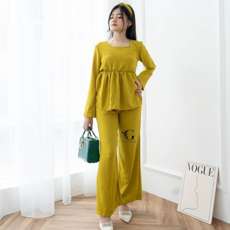 sudah 1 set dengan bando Bahan Crinkle Ukuran Standar Atasan Lingkar dada : 84cm Panjang lengan : 56cm Panjang baju : 60cm Celana Standar Lingkar pinggang : 54-120cm Lingkar paha : 52cm Panjang : 94cm Ukuran XL Atasan Lingkar dada : 100cm Panjang lengan : 56cm Panjang baju : 61cm Celana XL Lingkar pinggang : 56-120cm Lingkar paha : 60cm Panjang : 95cm