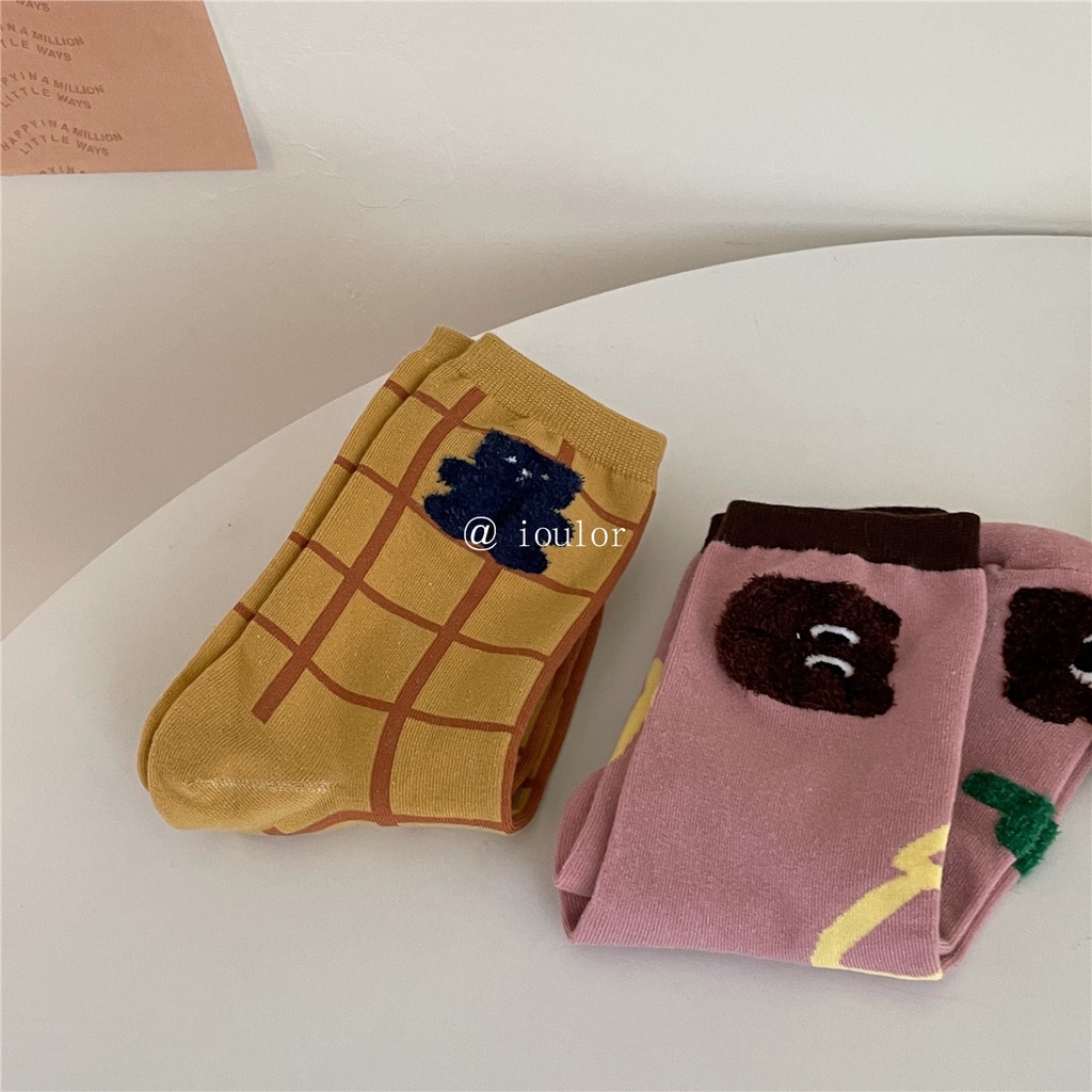 Detail Kaus kaki pasang baru yang lucu yang dilukis dengan tangan kartun kaus kaki tabung liar Jepang musim