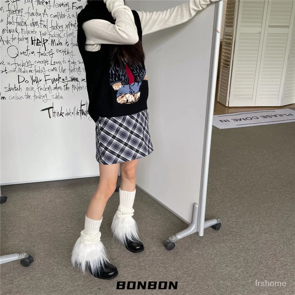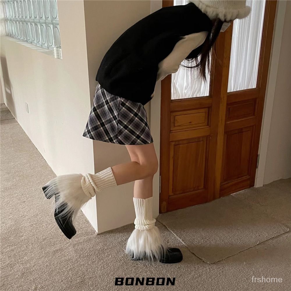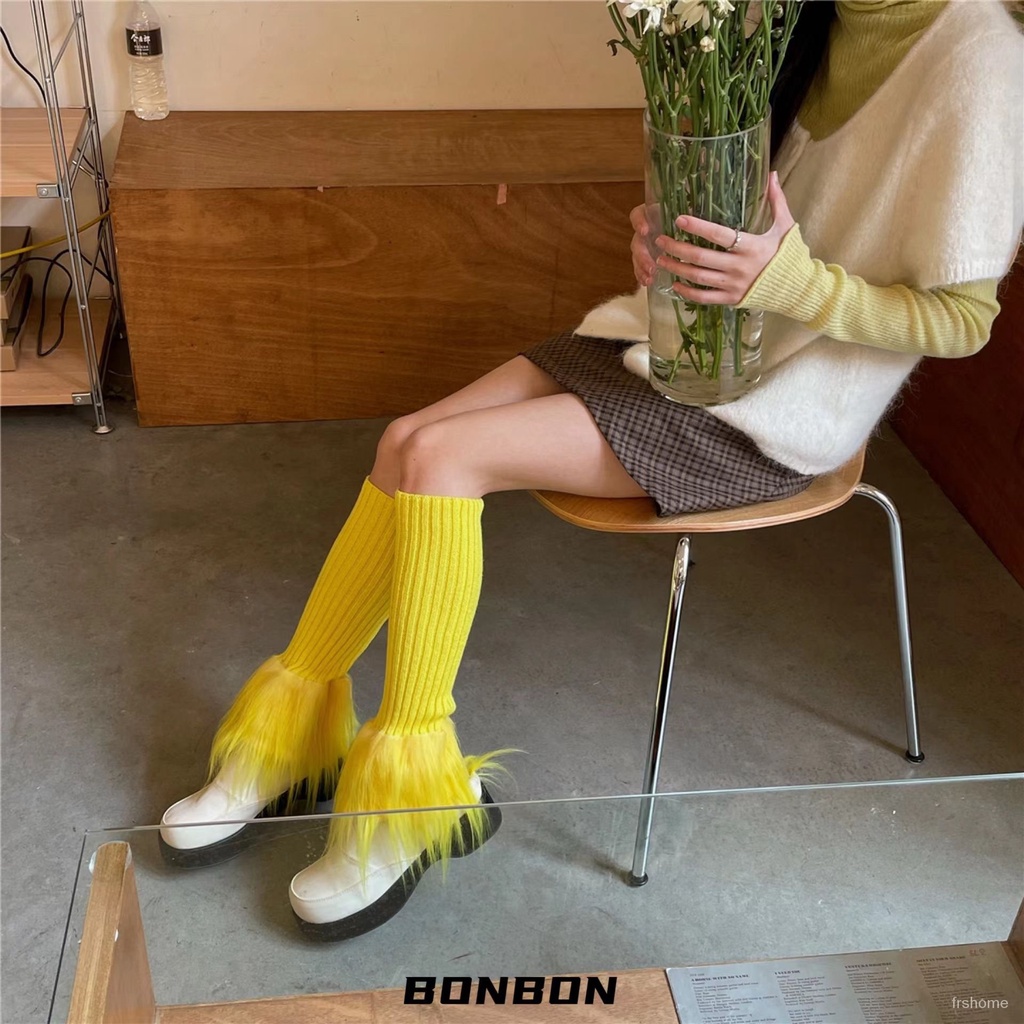 Detail Kaus kaki rajutan rajutan berbulu buatan tangan berwarna-warni y2k kaus kaki kaus kaki bertumpuk gad