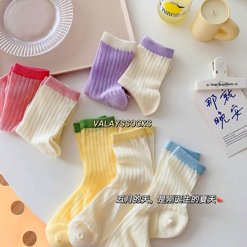 Detail Kaus kaki warna-warni tipis di dalam kaus kaki warna permen manis yang dapat bernapas kaus kaki pert