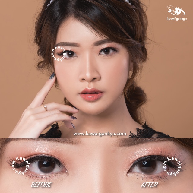 Detail KawaiGankyu Softlens - Kitty mini bom brown (1botol)