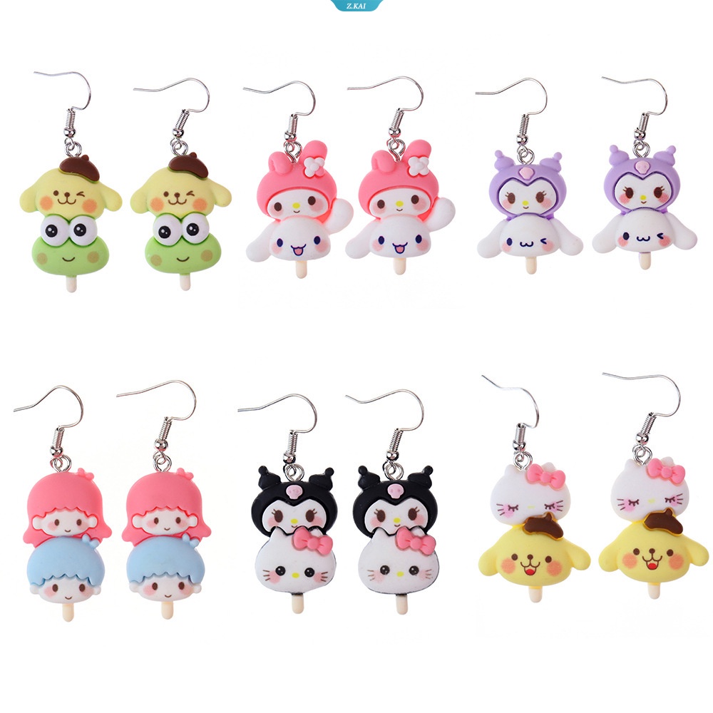 Detail Kawaii Anime Kartun Sanrios Kuromi Mymelody Cinnamoroll Hewan String Anting Lucu Resin Handmade Telinga Perhiasan Hadiah Untuk Anak Perempuan [ZK]