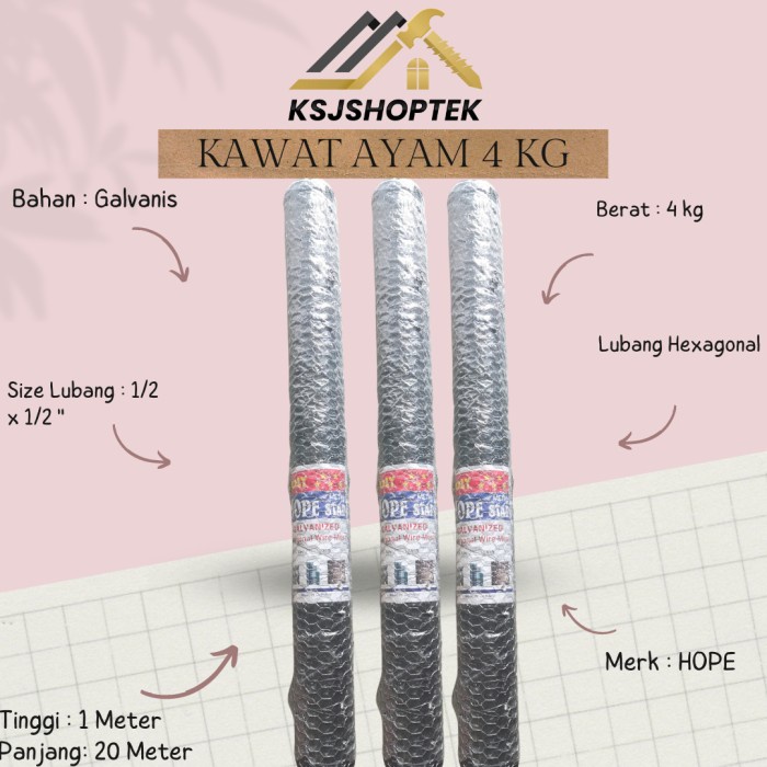 Perlengkapan Rumah > Perkakas > Perkakas Lainnya > Kawat ayam / Hexagonal Wiremesh Chicken 4 kg / Size 1/2 1 M x 20 M