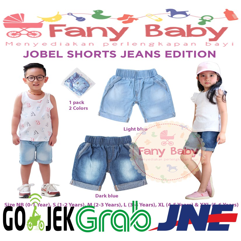 Jobel hadir kembali dengan produk *Celana Short Jeans Edition* untuk melengkapi dan memenuhi kebutuhan anak kesayangan Bunda. Di design dengan bahan yang nyaman dan model yang kekinian, membuat si Kecil kelihatan sangat keren saat dipakai. Dalam 1 pack terdapat 2 warna yaitu Biru Muda dan Biru Tua