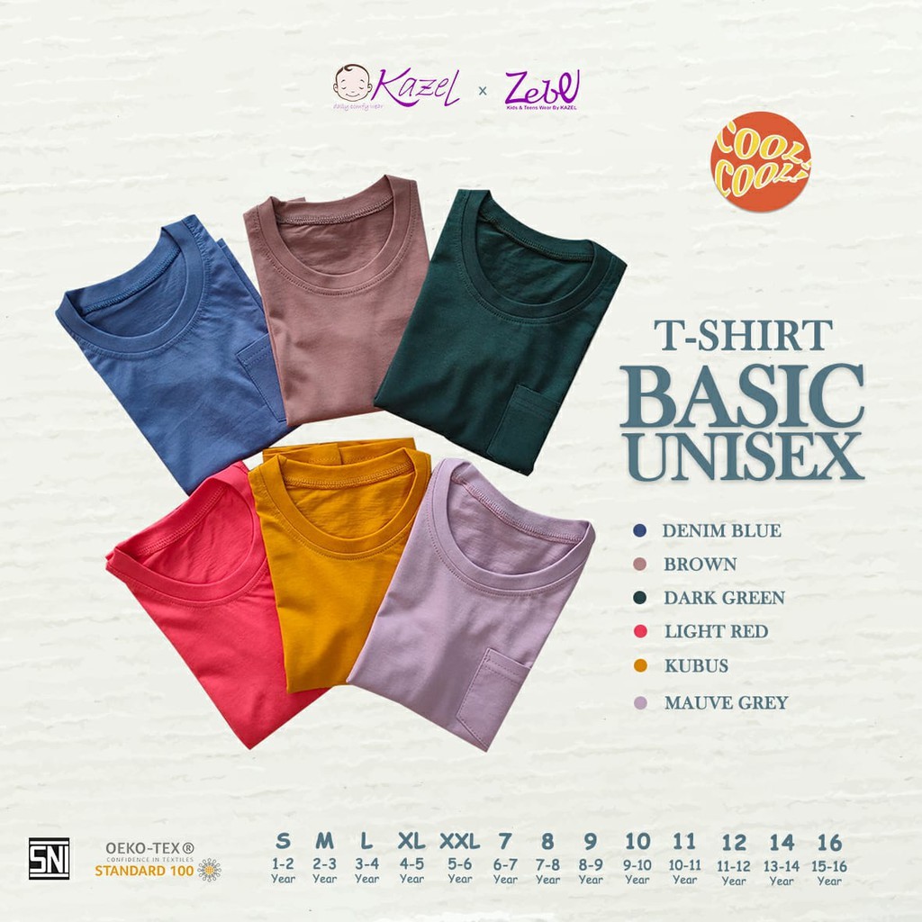 Fashion Bayi & Anak > Pakaian Anak Laki-Laki > Kaos > Kazel x Zebe 1-6 Tahun Tshirt Basic Pocket - Unisex Edition Baju Top Atasan Anak Laki Perempuan Boy CBKS