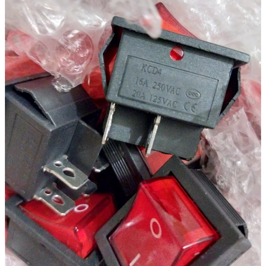 Detail KCD4 KCD-4 Saklar Power On Off Rocker Switch Besar 4 Pin Kaki Merah Lampu 16A 30A 250VAC