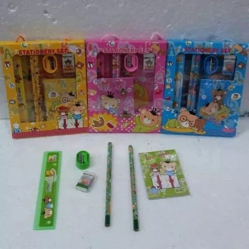 Set Alat Tulis Anak Sekolah perlengkapan alat tulis anak motif kartun, cocok untuk anak yang mulai masuk sekolah dengan desain cartoon yang unik membuat anak mau untuk menulis dan belajar.
