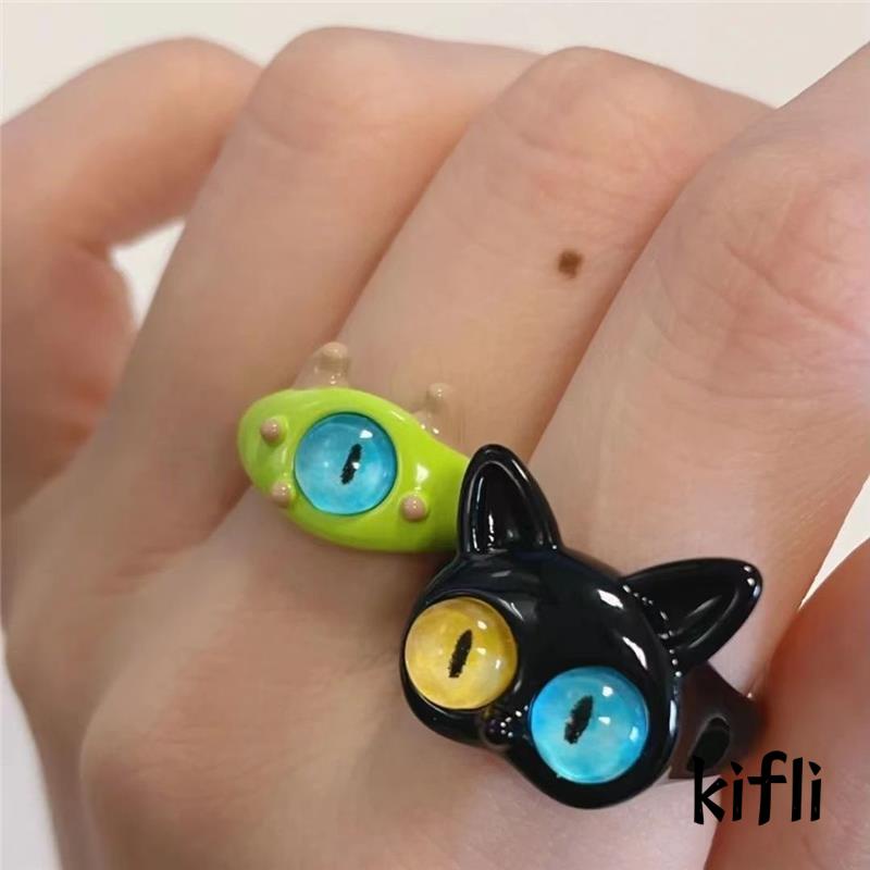 Cincin Monster Kecil Kucing Hitam Lucu Mata Besar Kartun Manis Cincin Pasangan Pacar Keren Cantik