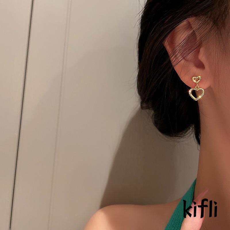 Detail [KD] S925 Perak Stitch Berlian Berongga Bentuk Hati Anting-Anting Sederhana Kompak Modis Anting-Anting