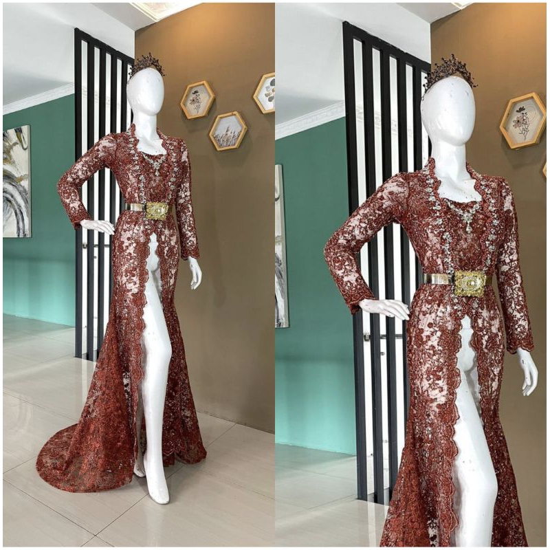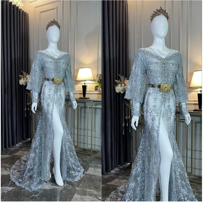 BAHAN KEBAYA AKAD TERBUAT DARI TILE HIGHT QUALITY KOMBI FULL PAYET MODEL SLIM BEREKOR SLAYER DI LENGAN BISA LEPAS PASANG