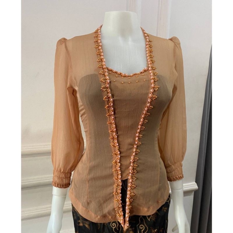 Detail Kebaya bali jadi modern bahan sutra yoryu metalik halus payet lengan kerut balon