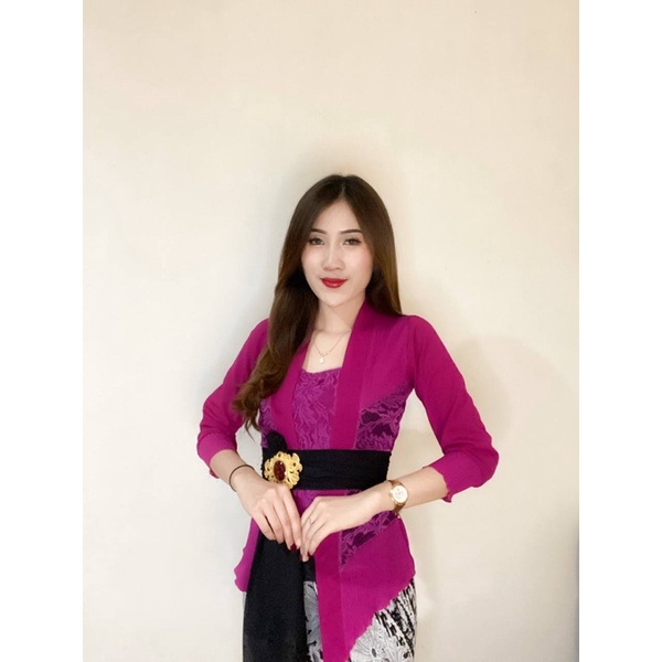 Kebaya plisket mix brokat semiperancis ini hanya baju saja belum termasuk selendang Warna varian 7 Ukuran dewasa Tidak strait Kancing kait Lengan panjang 7/8 model bet KEBAYA SAJA