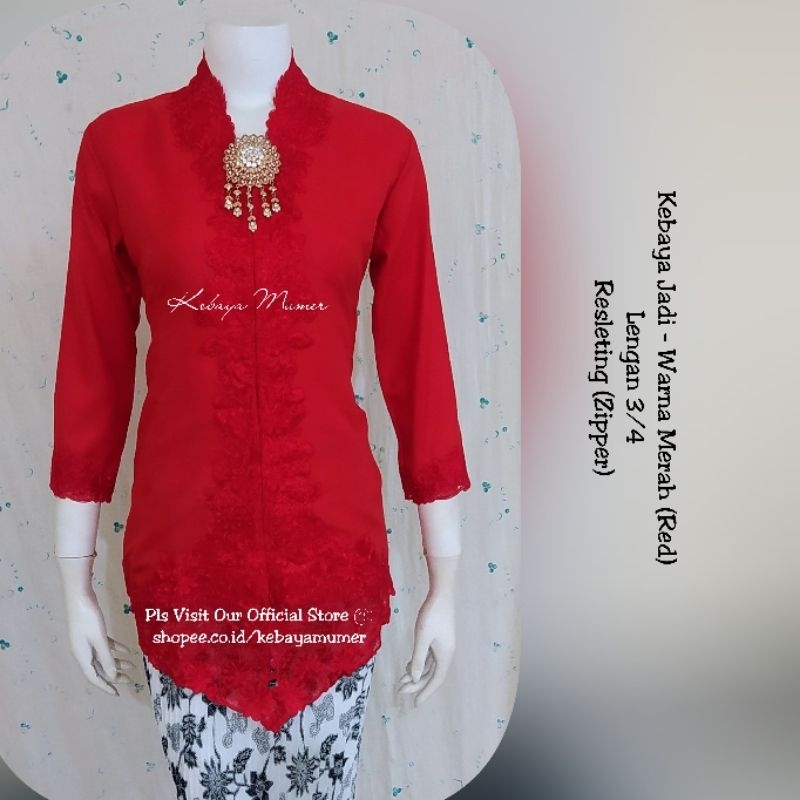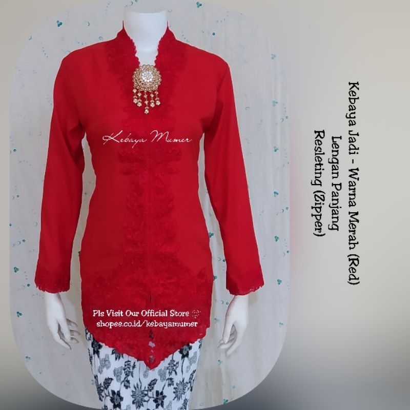 Kebaya jadi Menggunakan Resleting (Zipper) tidak menggunakan kancing Bahan katun Warna Merah (Red) dan Merah Maroon