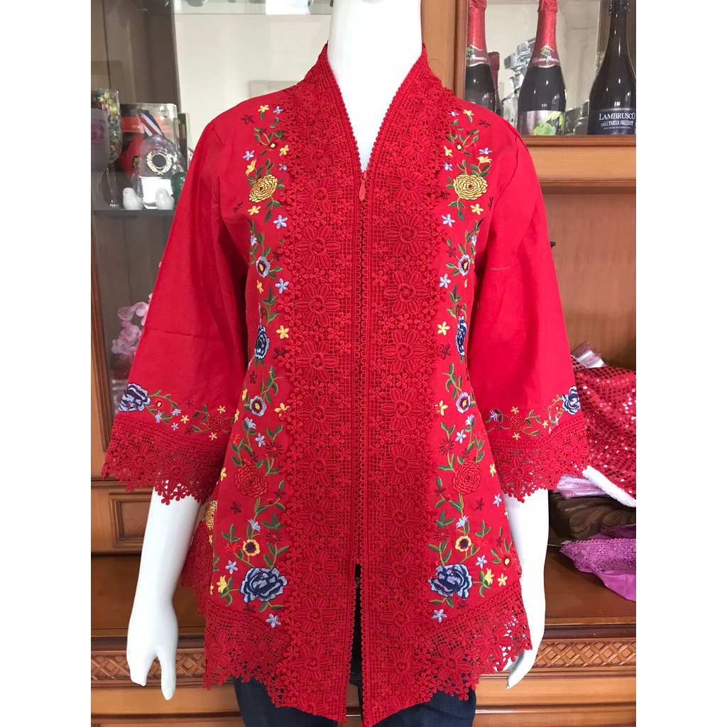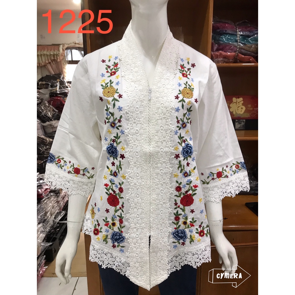 Bahan katun linen kombinasi brukat bordir timbul Sleting depan bordir di bahan belakang polos Size 4L 114-116cm lingkaran dada