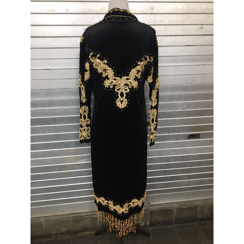 kebaya pengantin bahan bludru berpayet kombinasi korneli