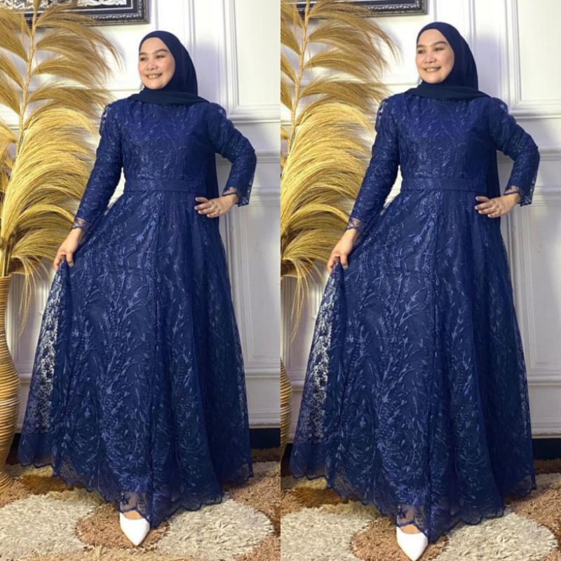 > Bahan : Tulle Bordir Mutiara > Ukuran : M , L , XL , XXL • M = Ld 96-98 cm • L = Ld 102-104 cm • Xl = Ld 108-110 cm • XXL = Ld 116-118 cm > Full Furing > Sleting Belakang > Panjang Baju 140 cm
